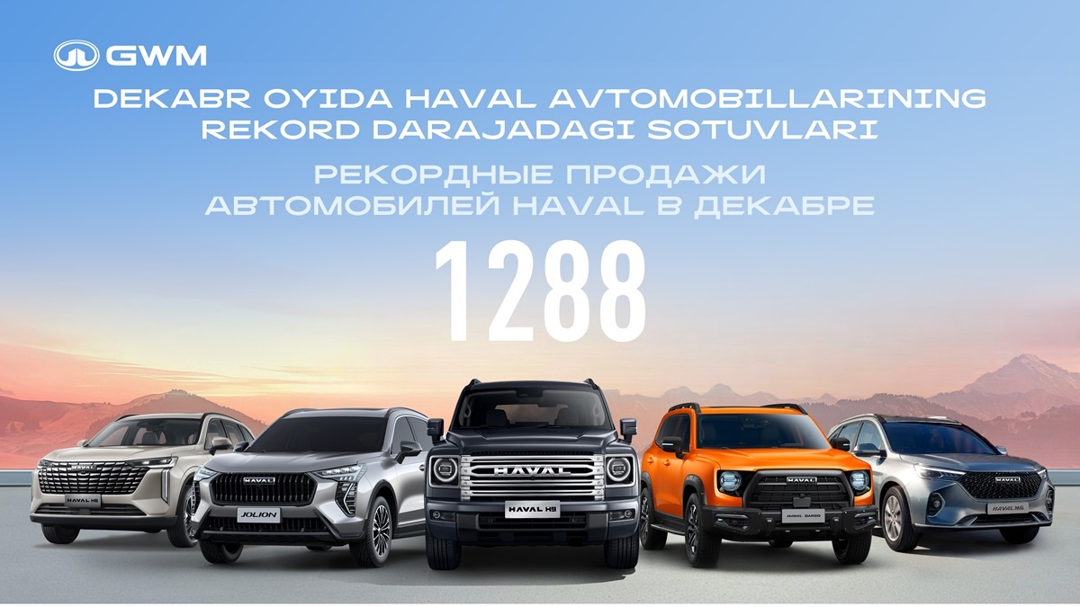 2025-yil dekabr oyida 1 288 dona HAVAL avtomobili sotilgan bo'lib, ushbu ko'rsatkich noyabr oyiga nisbatan 64,2 foizga ko'pdir. Brend krossover segmentida eng yuqori o'sish sur'atlaridan birini namoyish etdi.